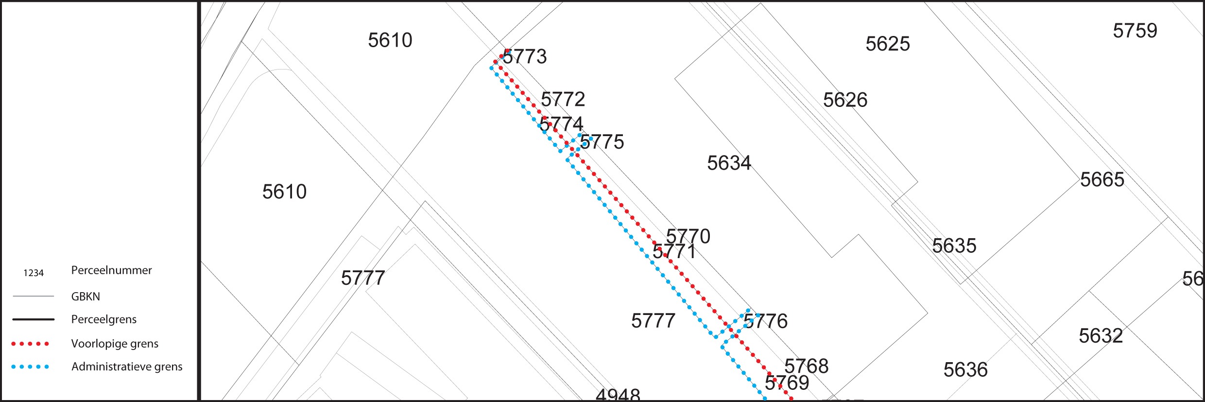 Administratieve grenzen komen voor wanneer het Kadaster een deelperceel heeft omgezet naar een geheel perceel of wanneer een gedeelte van een perceel is ingeschreven aan de hand van een (transport)akte met een situatietekening. Doordat bij het omzetten van deelpercelen of overnemen van grenzen uit een situatietekening geen precieze gegevens voorhanden zijn over de ligging, ontstaan bij administratieve grenzen onnauwkeurigheden. Ondanks dat een perceel met administratieve grenzen geen juridische waarde heeft zorgt dit binnen de ruimtelijke ontwikkeling voor veel onduidelijkheid. De administratieve grenzen blijken vaak anders te liggen dan de werkelijke eigendomssituatie is.